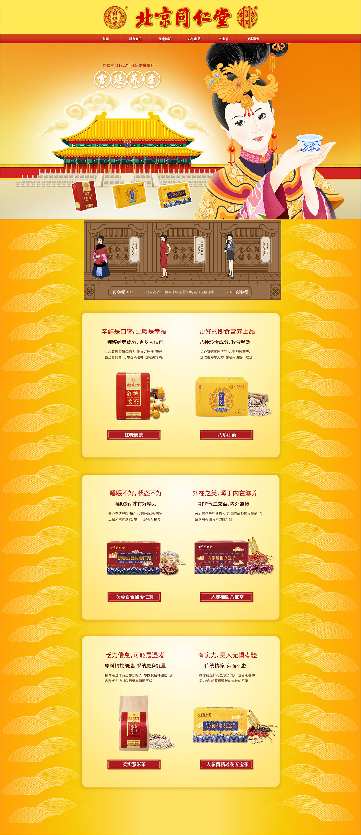 北京同仁堂红糖姜茶包装设计项目,电商网页风格设计,详情页设计: