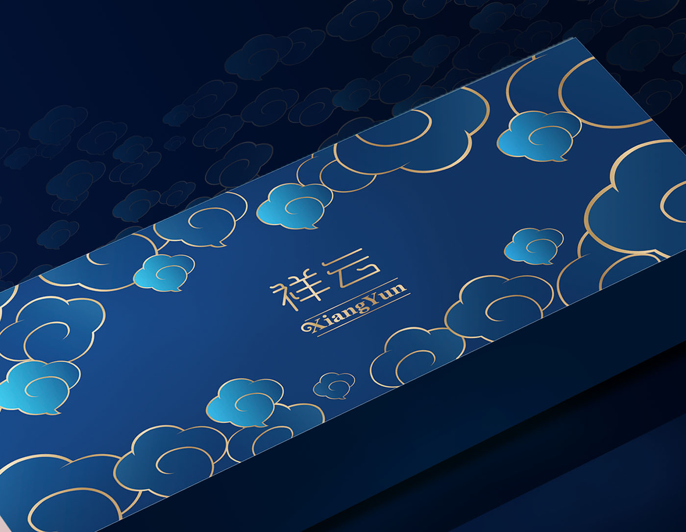 标志字体设计简洁、灵动,卷曲造型如祥云、像如意,体现了祥云烟吉祥如意的内涵,包装设计,用中国云体现吉祥的寓意。
